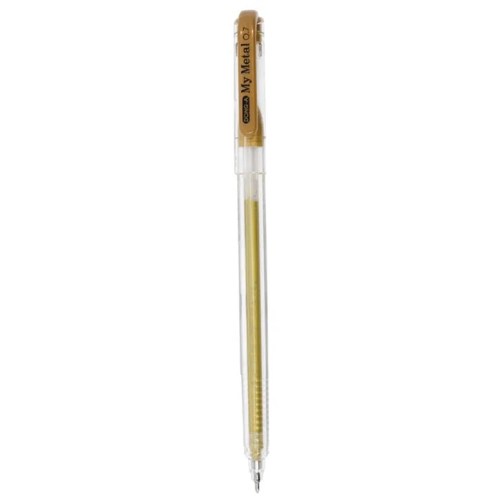 Bút sử dụng mực nhũ kim loại My Metal, cho màu sắc sáng, đều, độ phủ tốt và thể hiện rõ trên nhiều bề mặt giấy khác nhau, đặc biệt là giấy tối màu. Nét viết 0.7mm vừa phải, giúp chữ rõ ràng, không quá to, phù hợp cho cả viết chữ và vẽ chi tiết trang trí.
